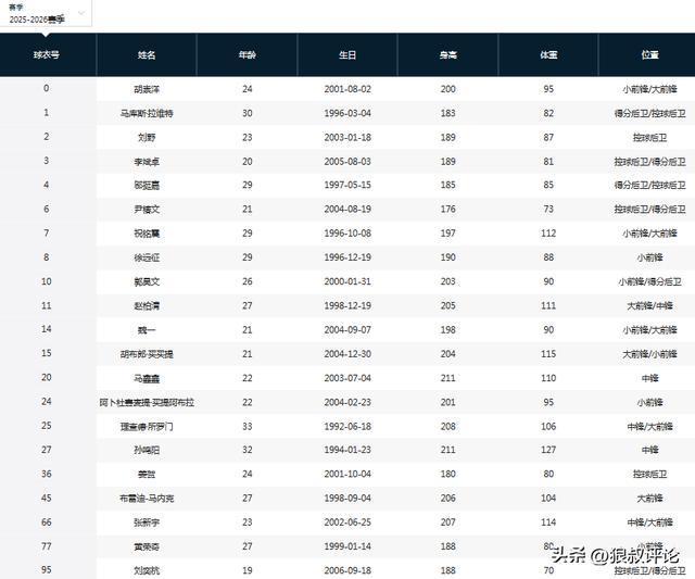 25-26赛季的注册球员如下: