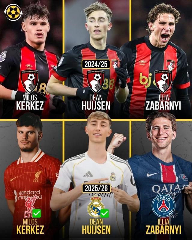 伯恩茅斯上赛季取得英超第8,一众球员踢出良好表现,尤其是3名后防球员备受瞩目,扎巴尔尼6300万欧元转投巴黎、赫伊森6250万欧元登陆皇马、凯尔凯兹4690万欧元加盟利物浦,直接拆了主力后防线。