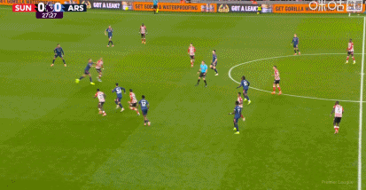 第53分钟,苏比门迪做球,萨卡跟进打门偏出