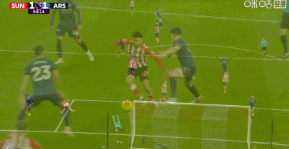 第54分钟,赖斯前场强硬断球,紧接着梅里诺助攻萨卡破门,阿森纳1-1!